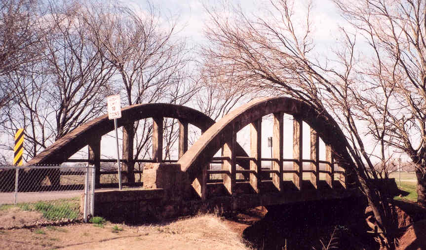 This bridge was built in 1917 and is 67 feet in length. State records claim that convict labor from the state pen in McAlester was employed to build this bridge.
