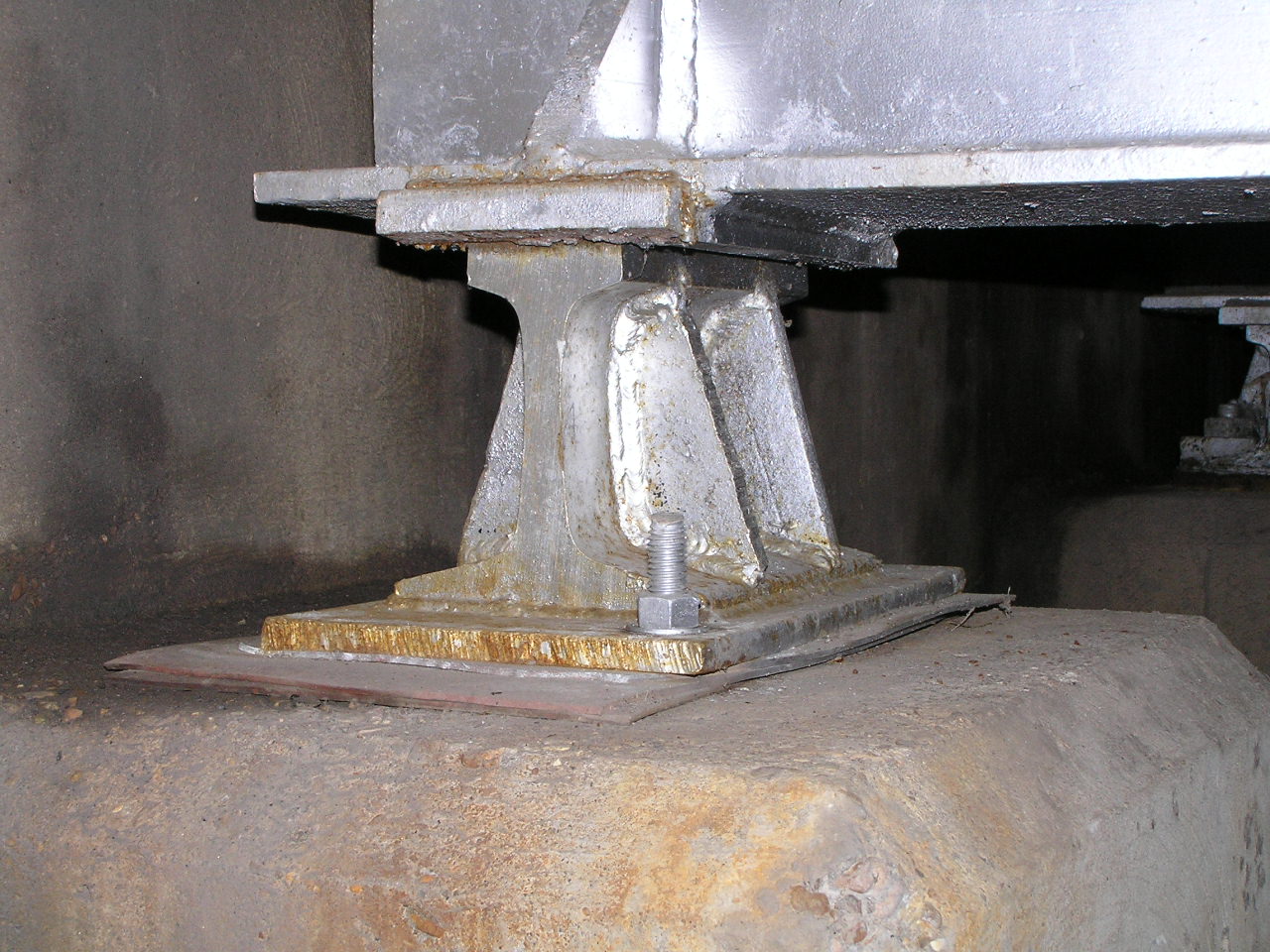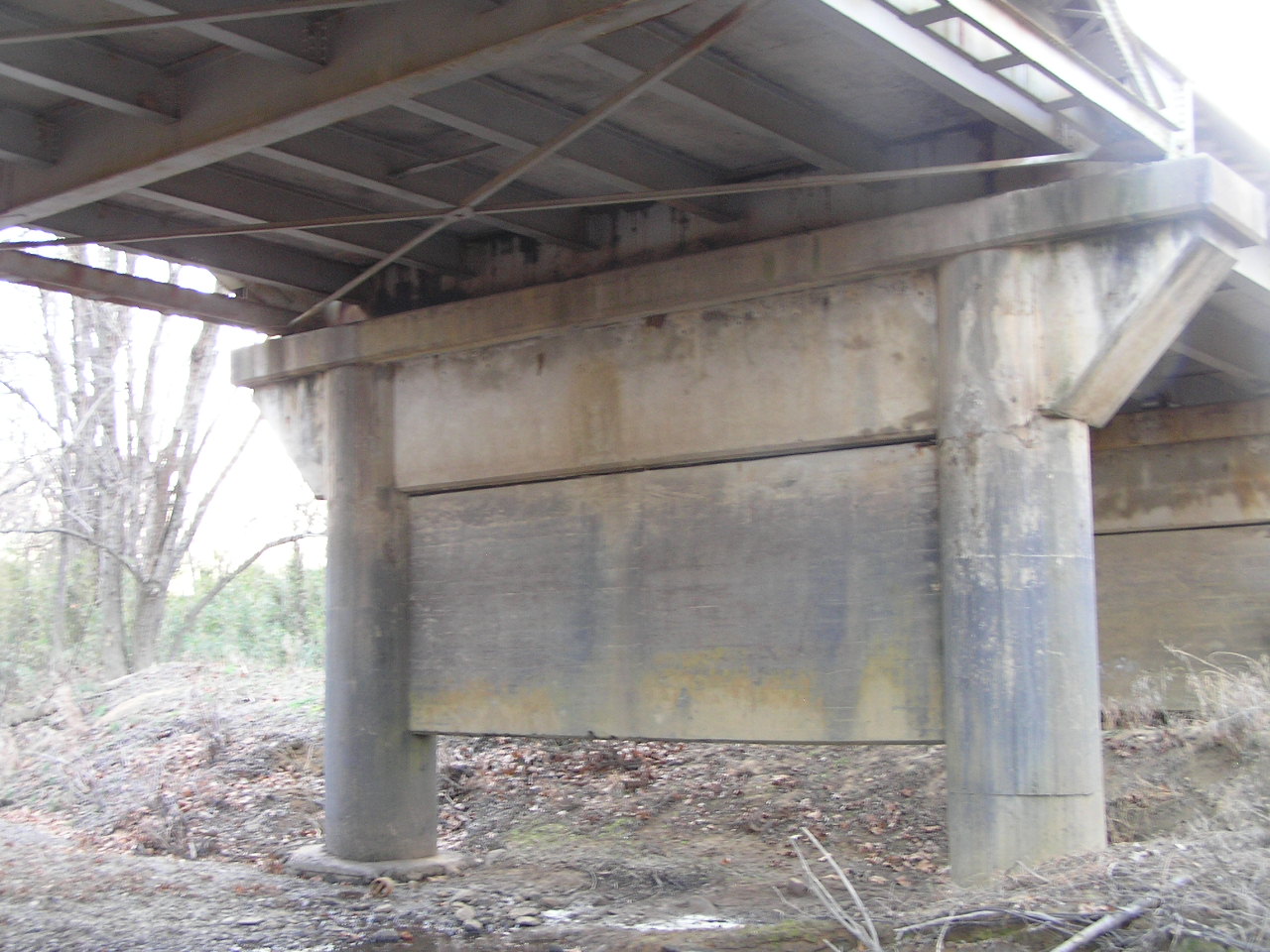 Above, these bearing pedestals where the stringer spans sit on the abutment look as though they were made from standard inverted "T" section railroad rail.