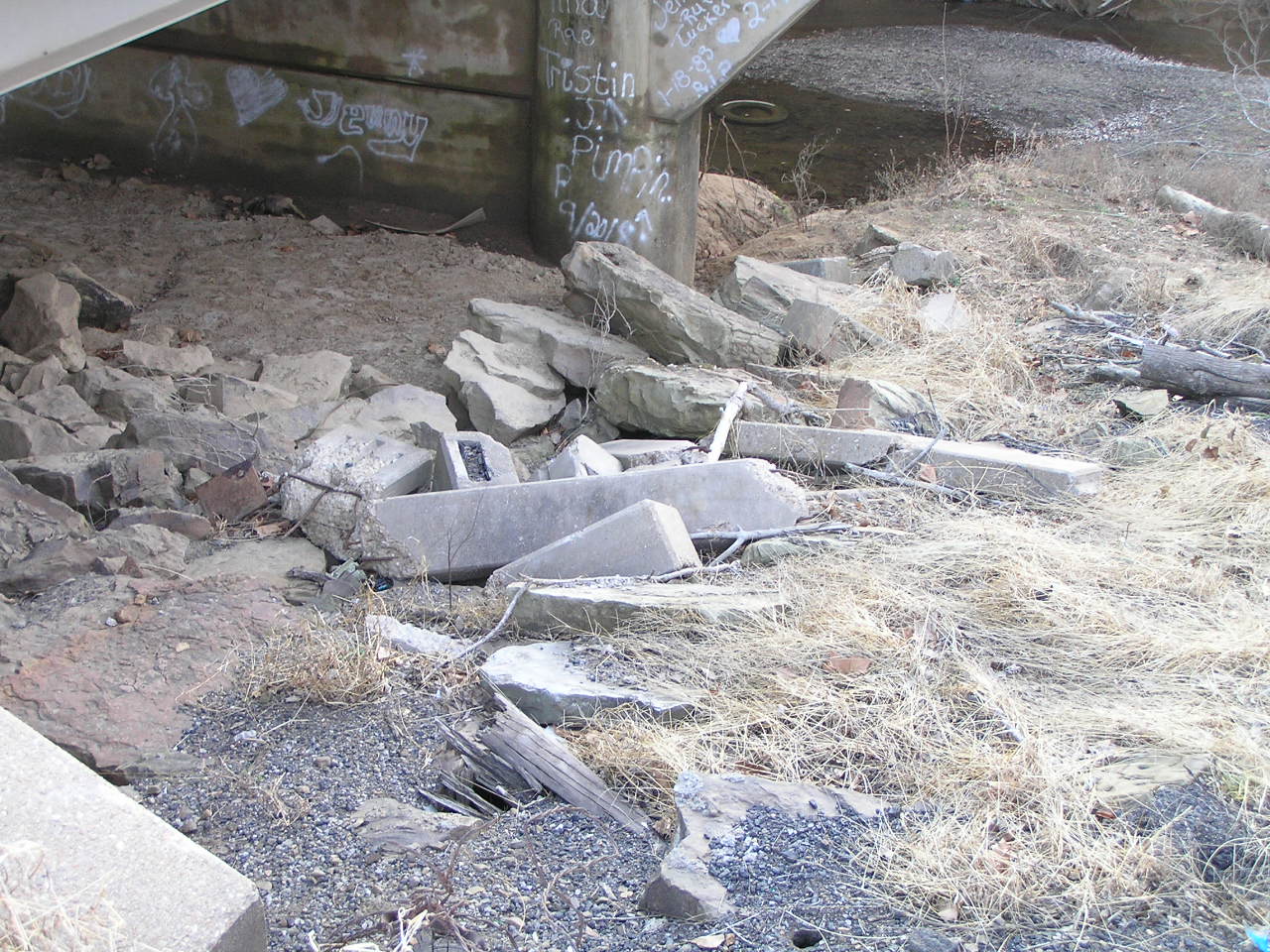 Below, these piers look like, judging from the look of the concrete, that the tops were widened to accommodate this full-width bridge. It is thus possible the construction date is actually when the bridge was widened.