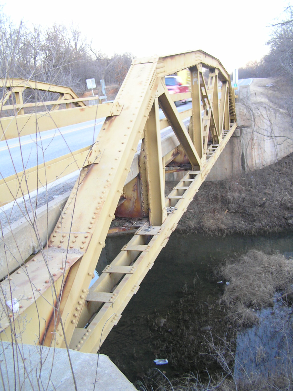 Above, another view of the steel truss taken from the deck. Below, an angle view looking west. This bridge is in excellent condition.