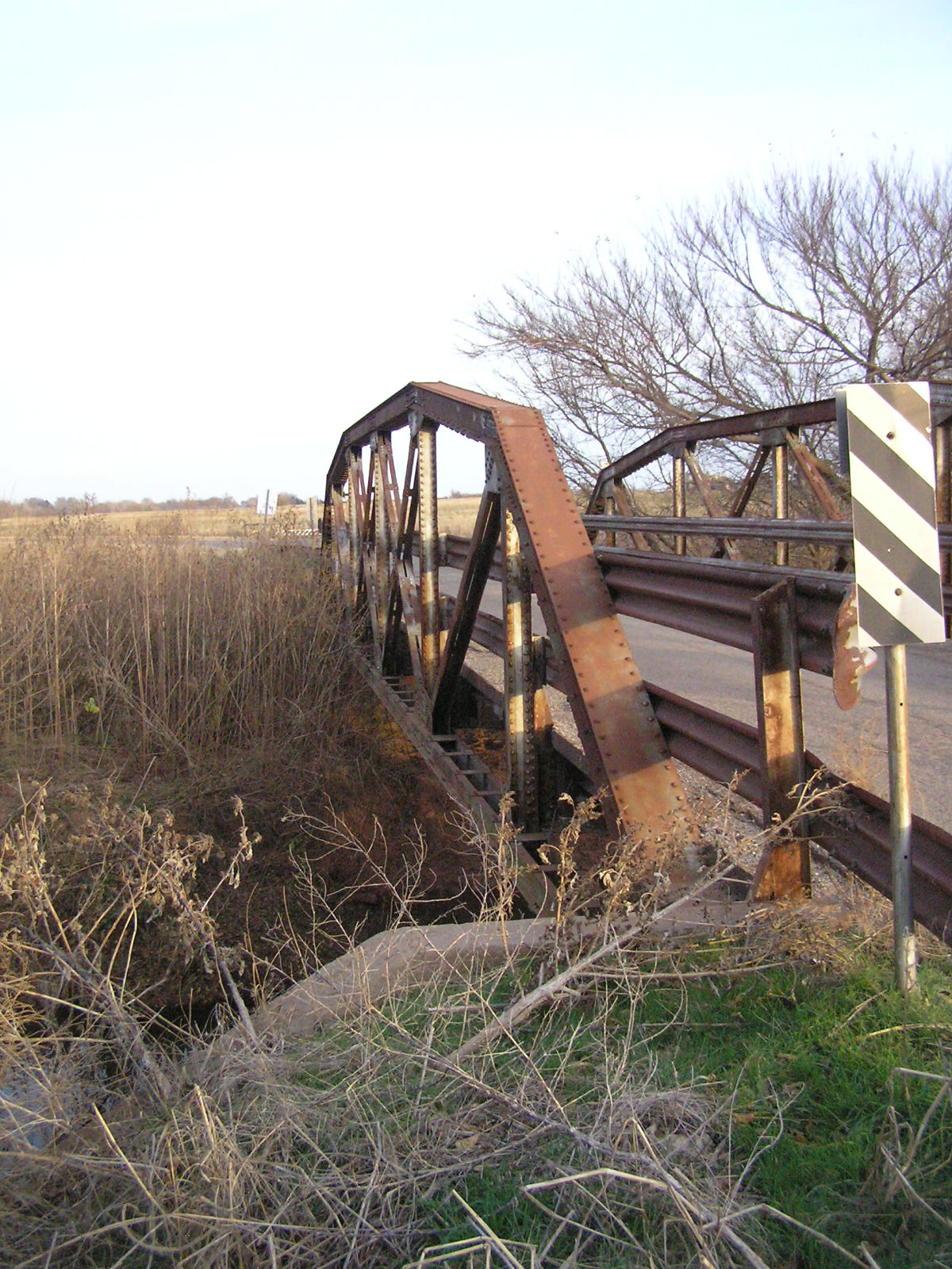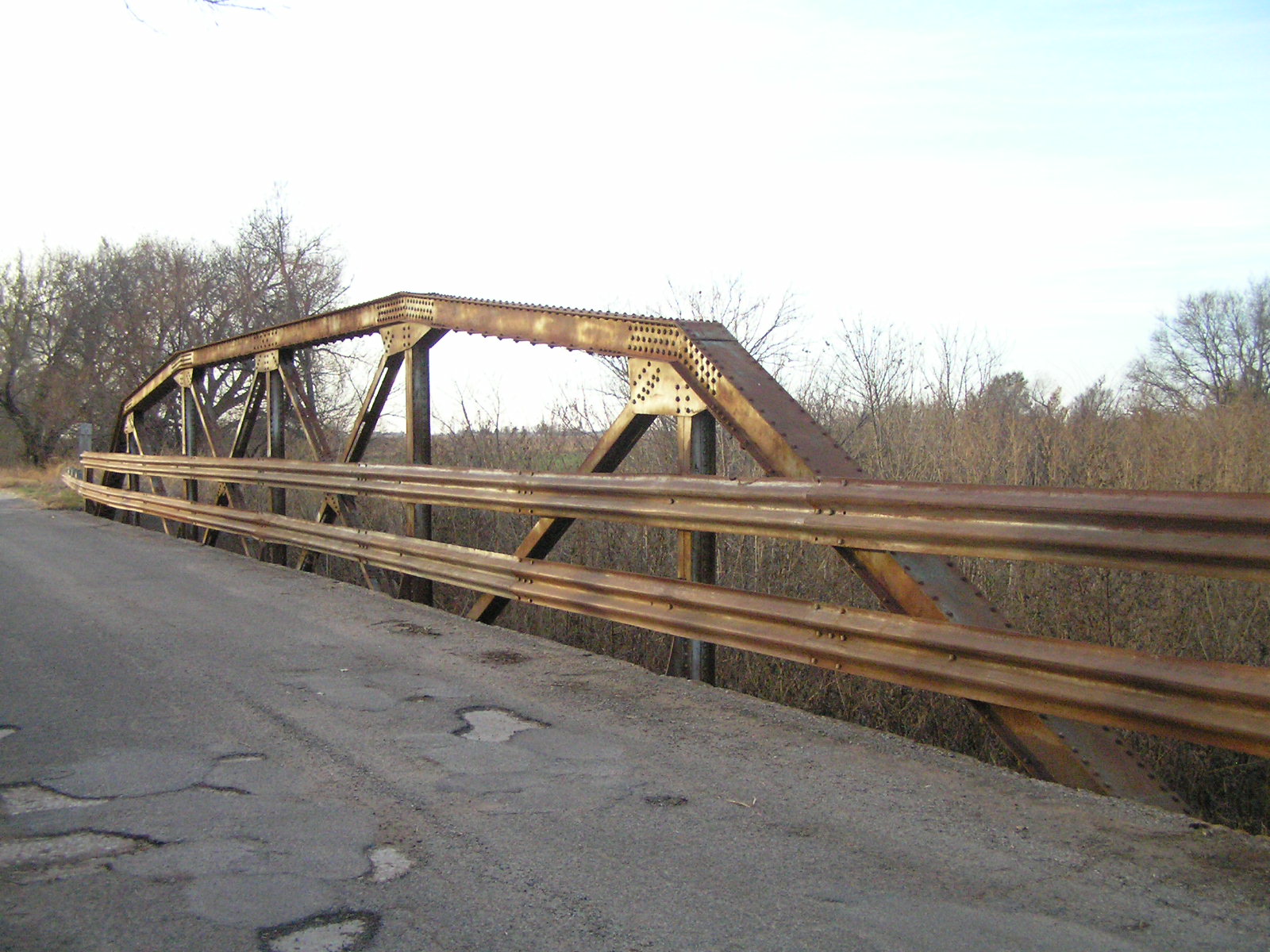 Below, side view of the truss from the deck. The six-panel camelback pony truss is one of the least common of the state-designed types.