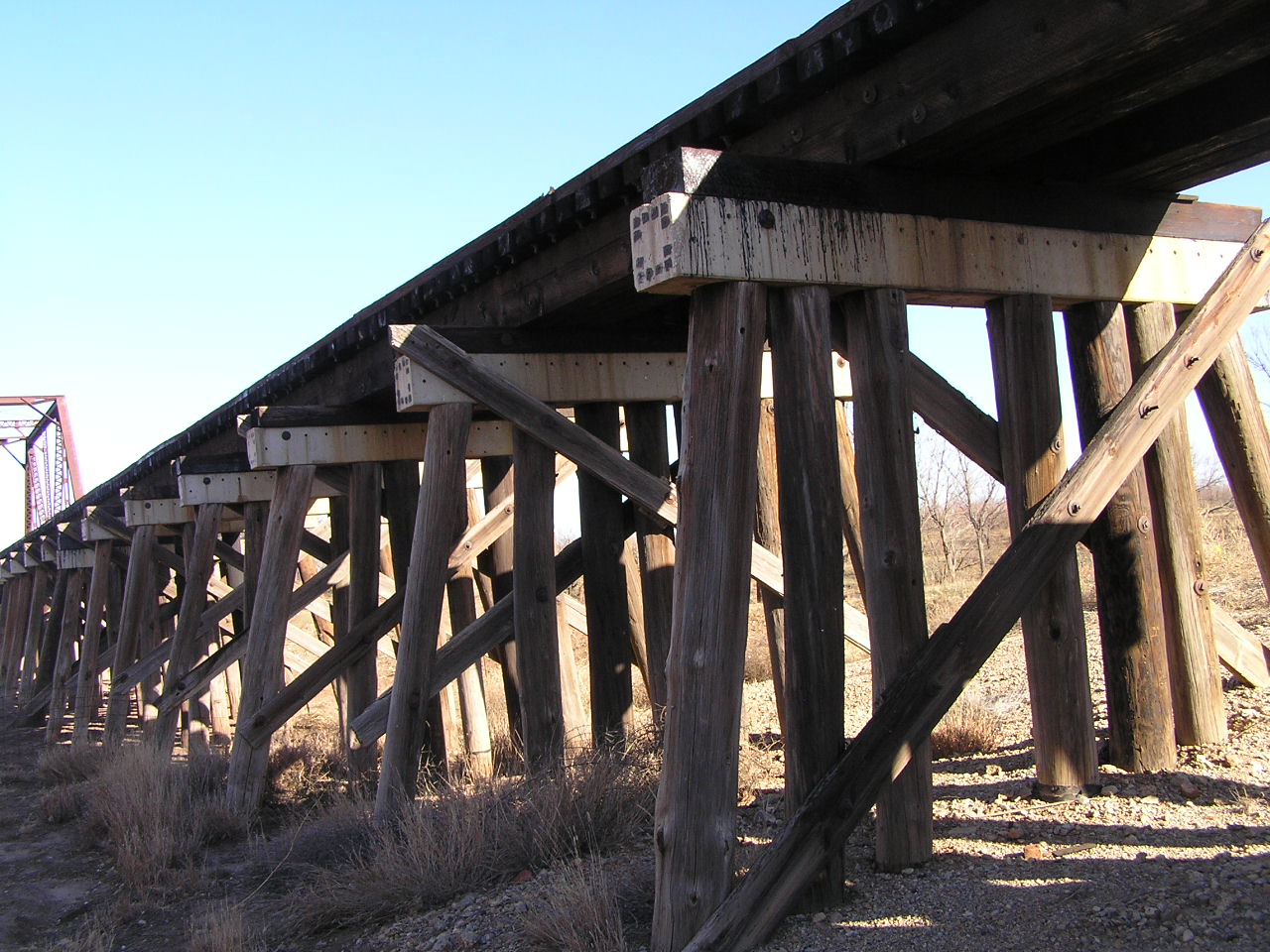 Located on the southwest edge of Eldorado, this bridge is still in service by the BNSF railroad company. Above, a view through the bridge.