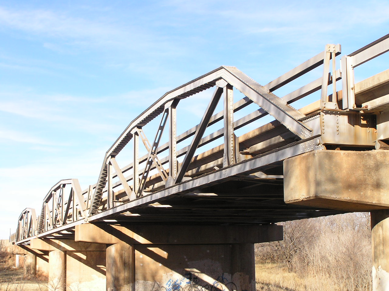 Above, a view of the trusses. You can see how they reused the existing narrow piers. The piers look like they were built to accommodate a 22 foot wide bridge originally.